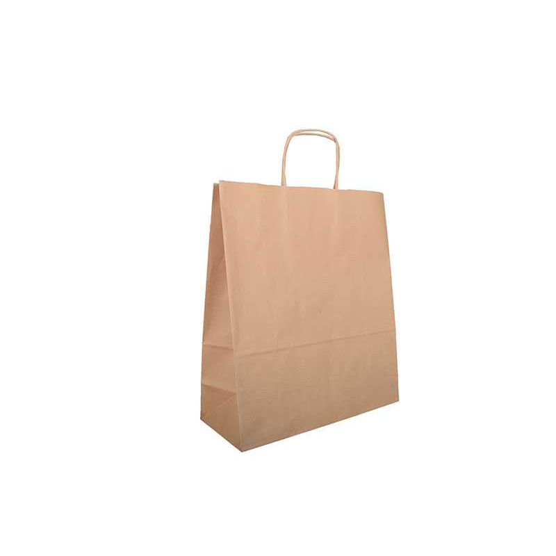 M1155 Sac papier brun 100gr poignées torsadées - 45+14x50cm - Poignées écrues 200